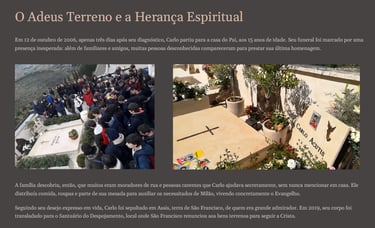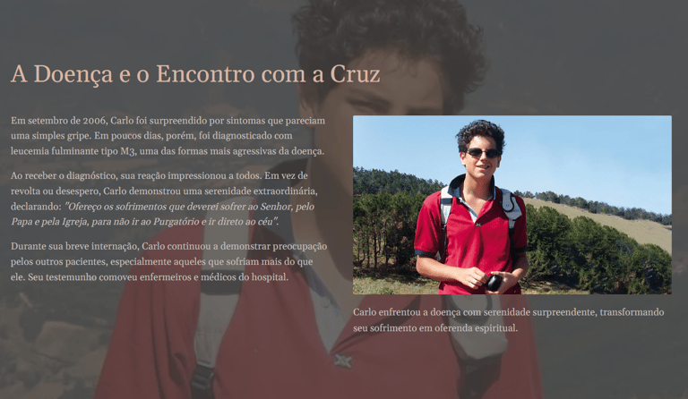 ✅ Conhecer a história completa de Carlo Acutis, o “santo da internet”.
